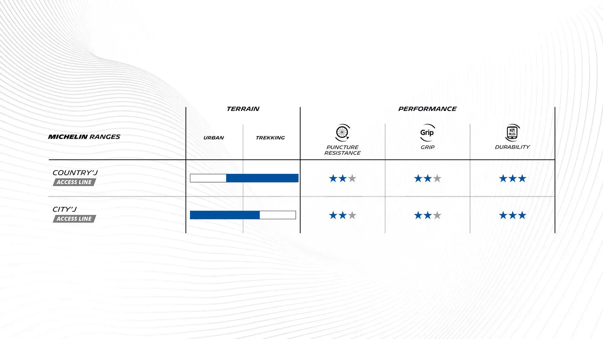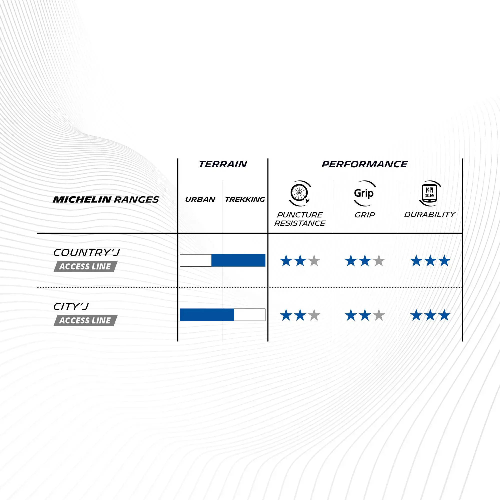 Enhance your riding experience with the best tire for your need*. (*Indicative performance rating for MICHELIN tires)
